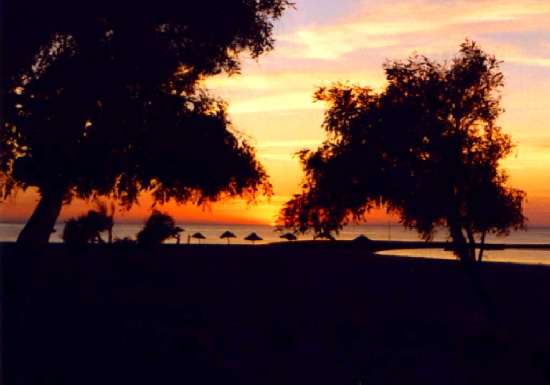 Tunisia, Sunsetbehind the eucalyptuses, Kerkennah, May 1997